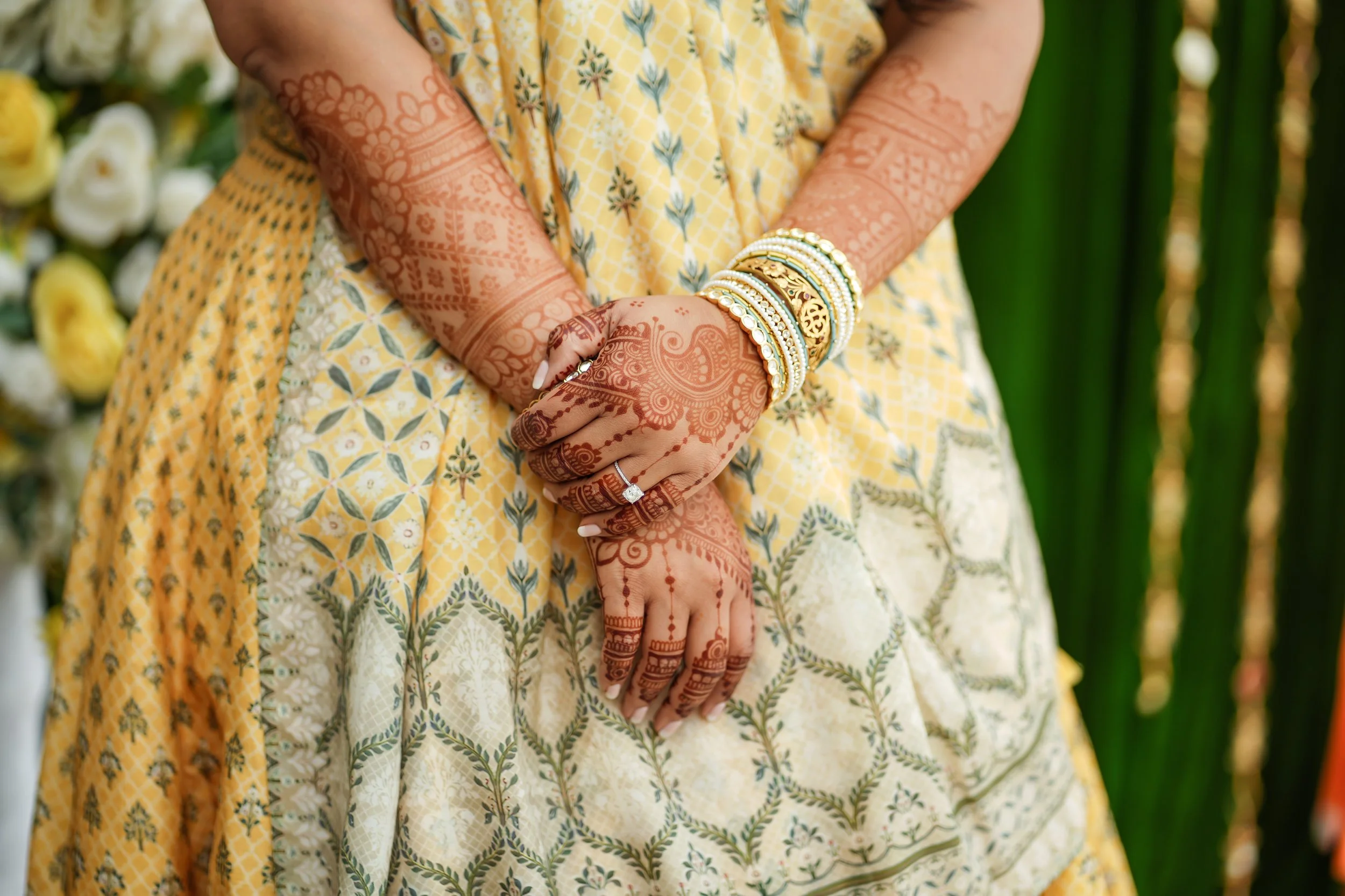 Add yellow bangles or kaleere to complement a multicolored bridal look.